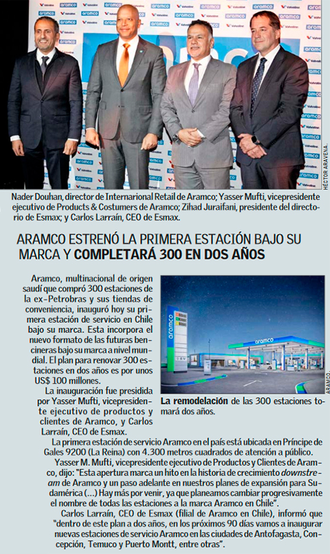 Aramco inaugura su primera estación de servicio en Chile y delinea sus próximos pasos - (Diario Financiero)