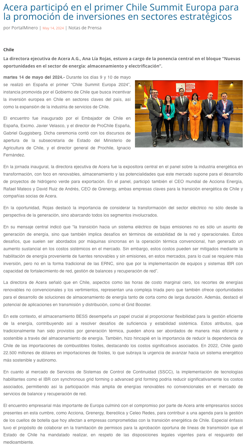ACERA A.G. participó en el primer Chile Summit Europa para la promoción de inversiones en sectores estratégicos - (h2news.cl)