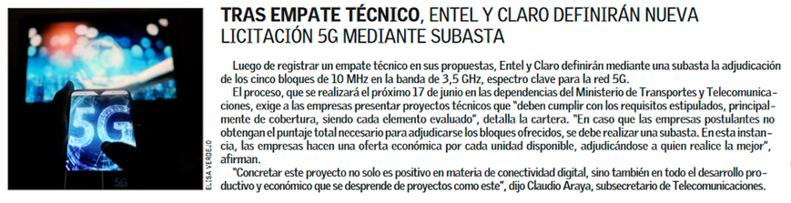 Entel y Claro empatan en fase técnica de concurso 5G: proceso se definirá en subasta - (Diario Financiero)