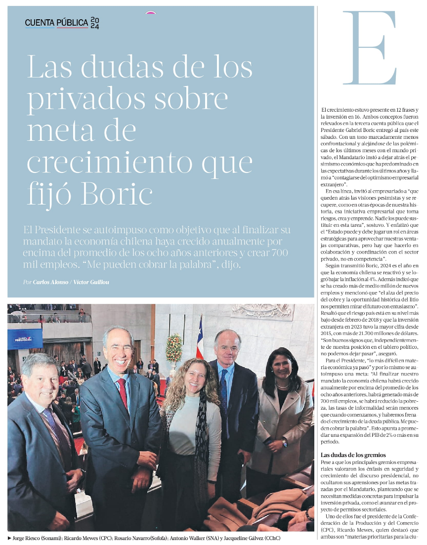 Optimismo, brotes verdes y aborto: los ejes del discurso - (Diario Financiero)