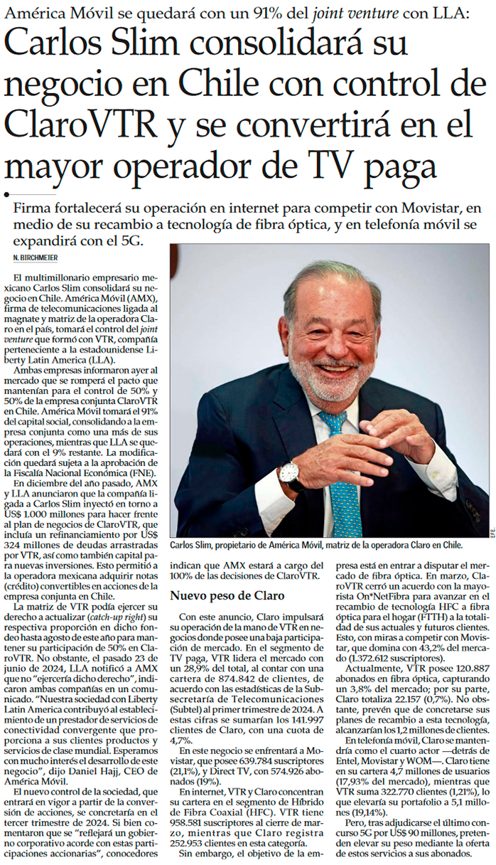 América Móvil se queda con el control de ClaroVTR tras capitalizar préstamos y su socio Liberty se diluye - (Pulso)