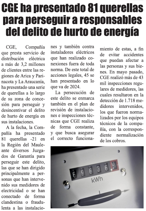 CGE presenta 4 querellas por hurto de energía en Biobío - (El Sur)