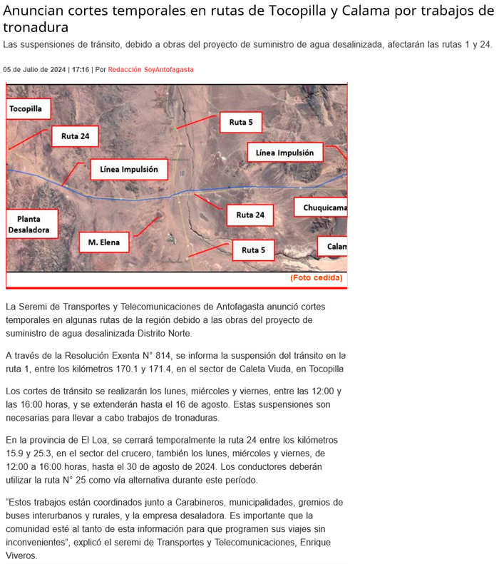 Anuncian cortes en rutas de la Región de Antofagasta - (termometro.cl)