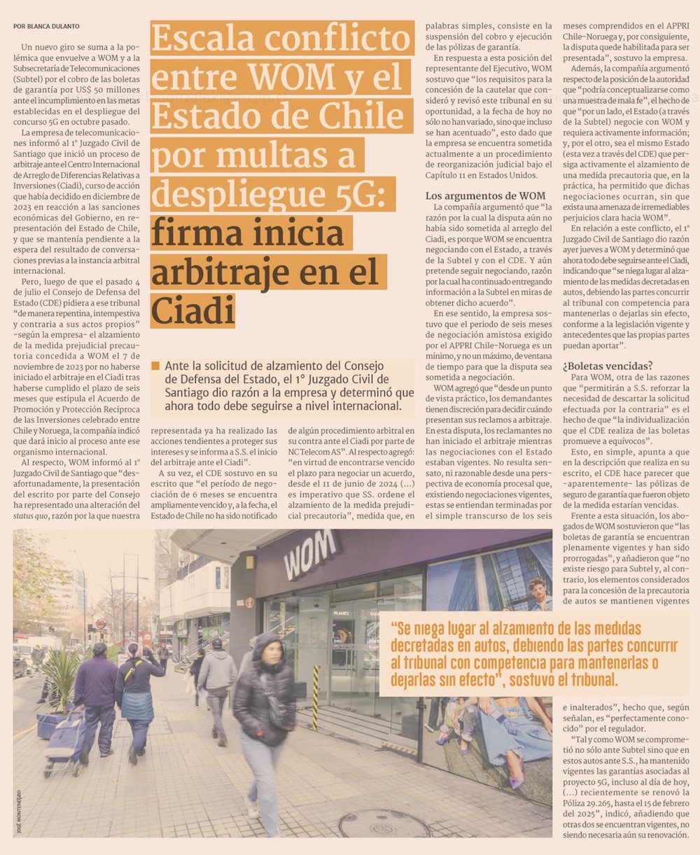 WOM inicia proceso ante el Ciadi contra Chile, pero ofrece “seguir dialogando” - (El Mercurio de Santiago)