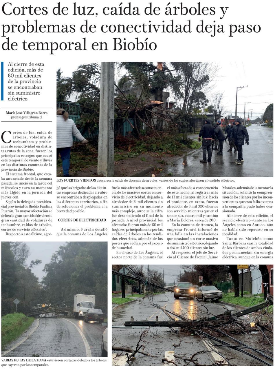Cortes de energía e intensas rachas de viento se registran debido al temporal - (Crónica de Chillán)