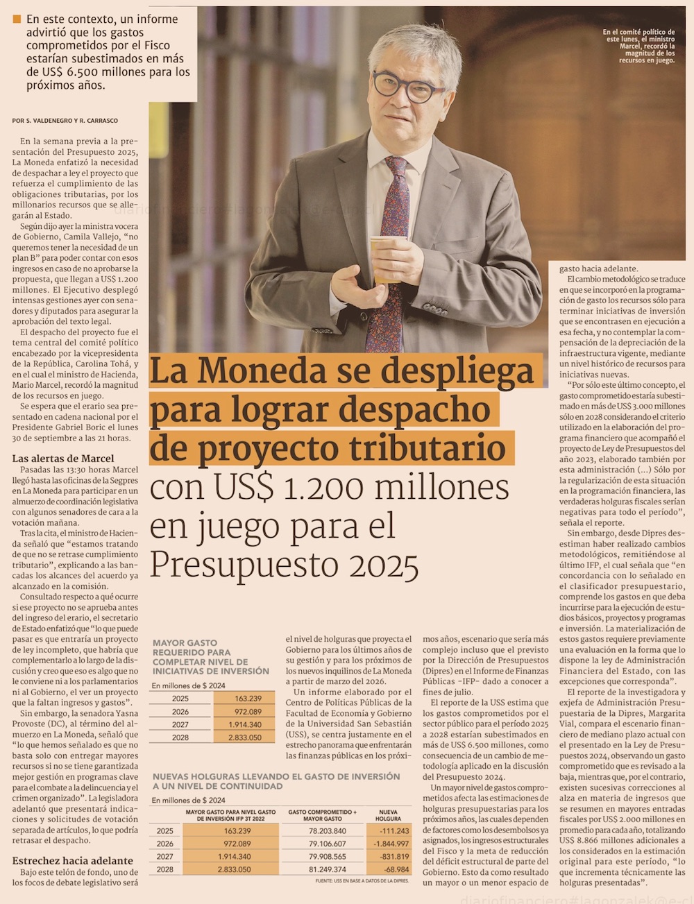 El Gobierno se despliega para evitar que el proyecto antievasión termine en mixta - (El Mercurio de Santiago)