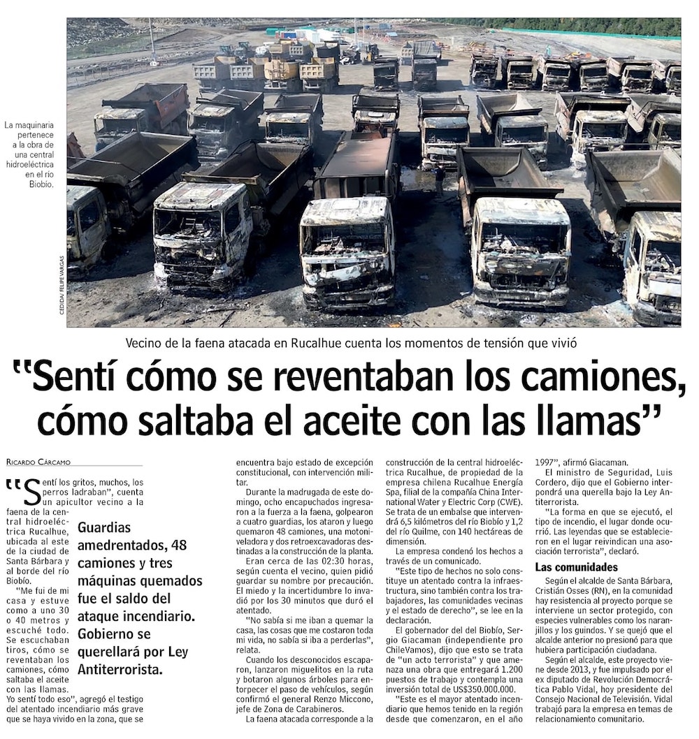 Gobierno anuncia querella por Ley Antiterrorista por ataques incendiarios en Rucalhue y Contulmo - (Diario Concepción)