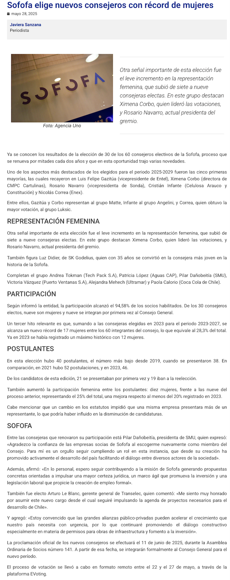 Sofofa renueva su consejo con histórica participación y liderazgo femenino - (norteonline.cl)
