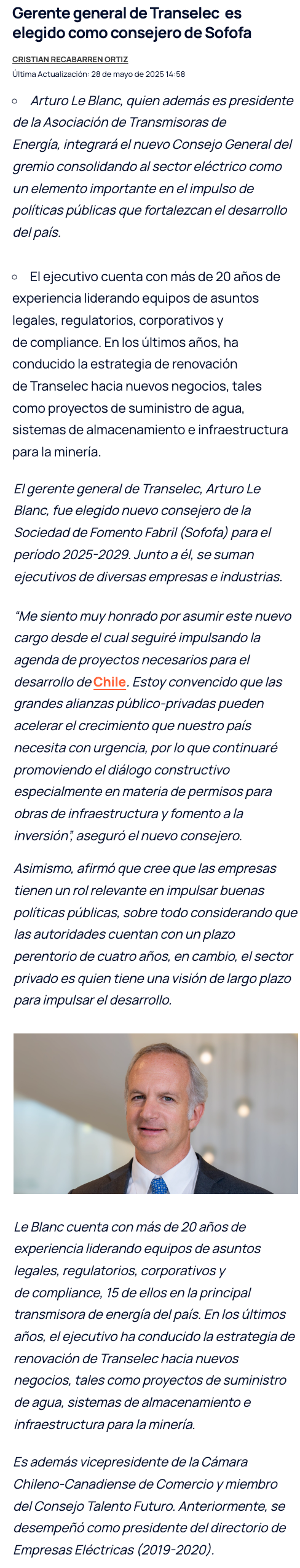 Gerente general de Transelec es elegido como consejero de Sofofa - (minerialocal.cl)