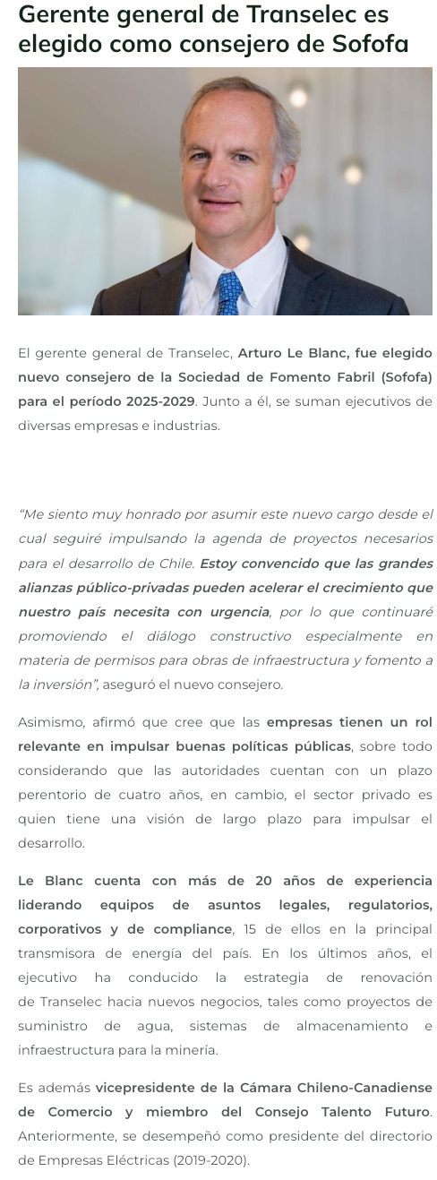 Gerente general de Transelec es elegido como consejero de Sofofa - (portalminero)