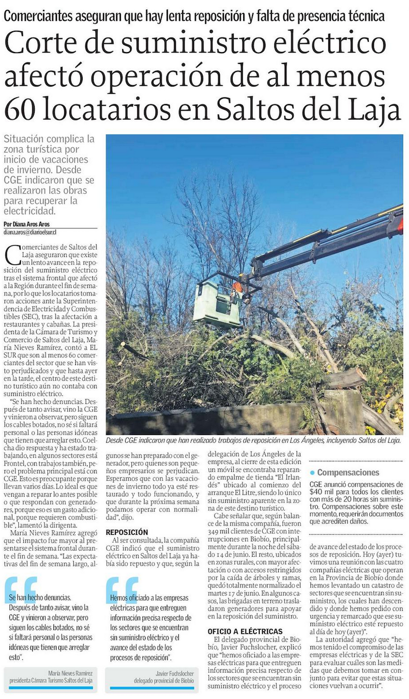 Corte de electricidad por temporal: Asociación de Municipalidades evalúa demanda contra distribuidoras - (Diario Concepción)