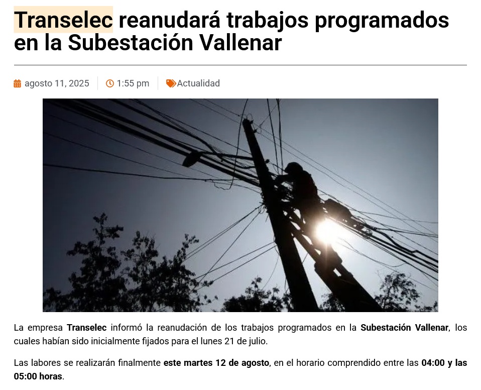 Transelec reanudará trabajos programados en la Subestación Vallenar - (elzorronortino.cl)