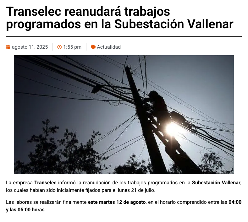 Transelec reanudará trabajos programados en la Subestación Vallenar - (elzorronortino.cl)