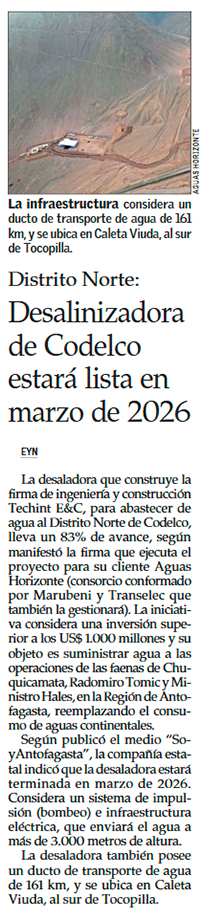 81% de avance: Desaladora de Codelco estará terminada en marzo de 2026 - (soyantofagasta)