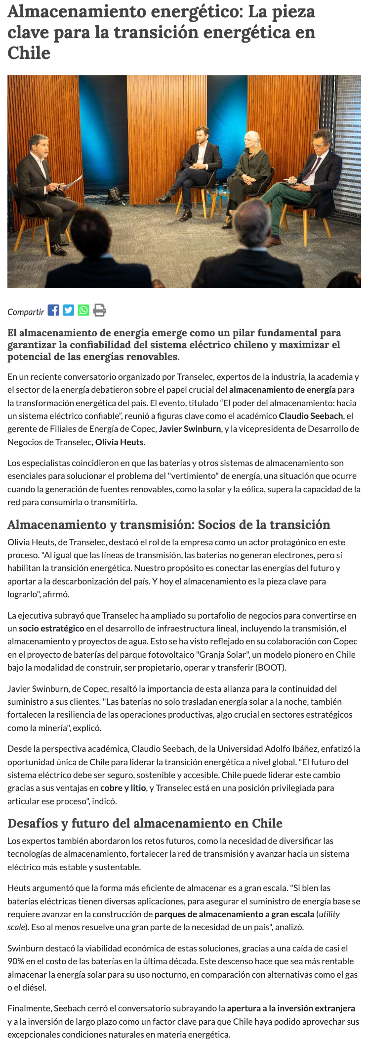 El almacenamiento como un pilar fundamental para la transformación energética del país - (nuevaminería online)