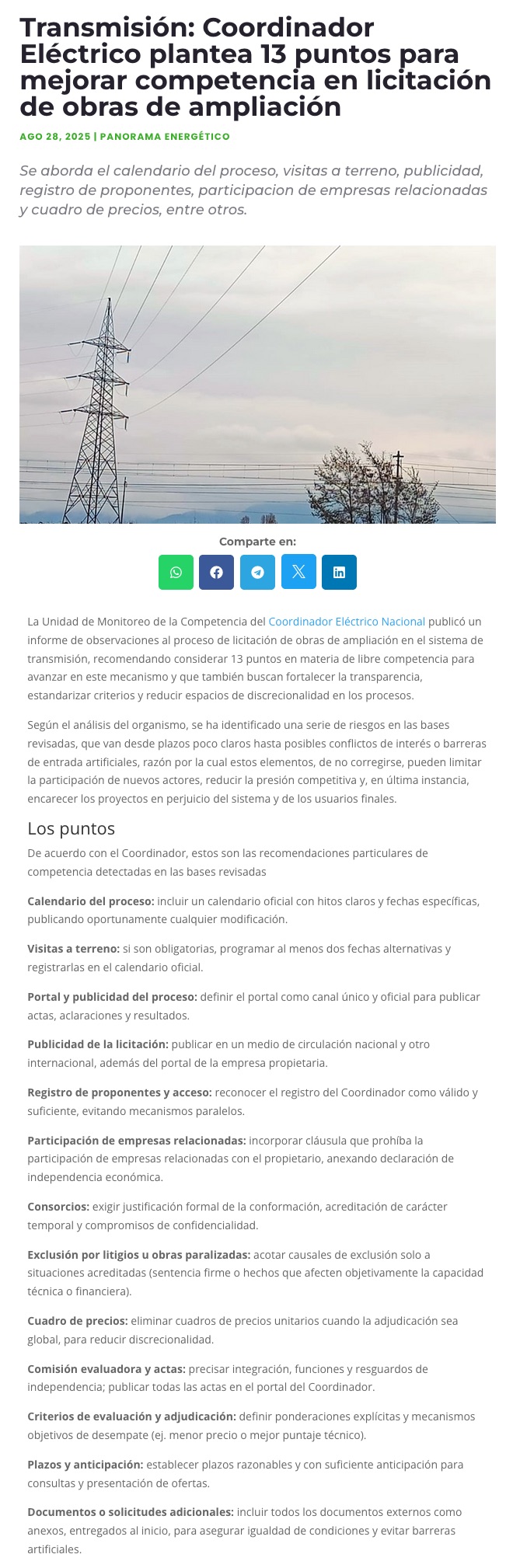 Coordinador da a conocer medidas para fortalecer el Sistema Eléctrico Nacional - (revistaei.cl)