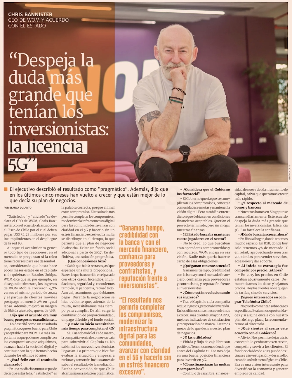 Chris Bannister y compromiso con el gobierno de terminar la red 5G de Wom: “Nuestros bonos anuales están basados en eso” - (Pulso)