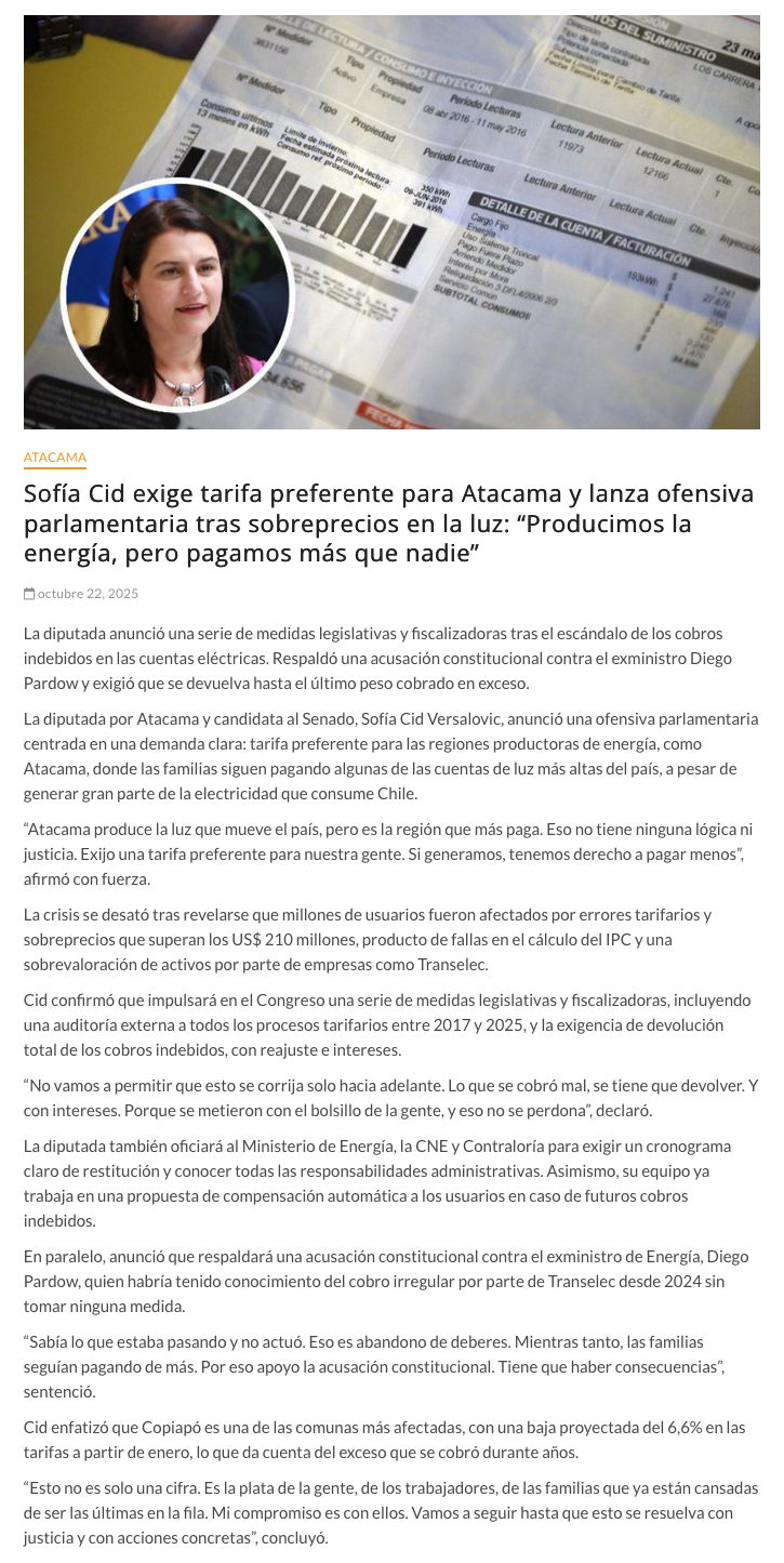Sofía Cid exige tarifa preferente para Atacama y lanza ofensiva: “Producimos la energía, pero pagamos más que nadie” - (Nostálgica Online)