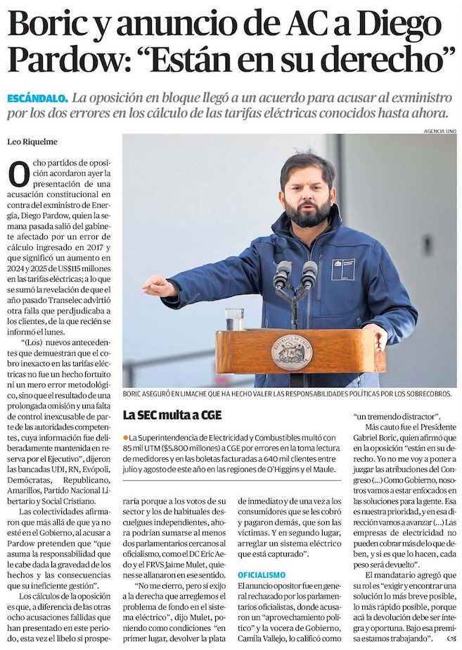 Boric y anuncio de AC a Diego Pardow: "Están en su derecho" - (Medios Regionales Cadena El Mercurio)