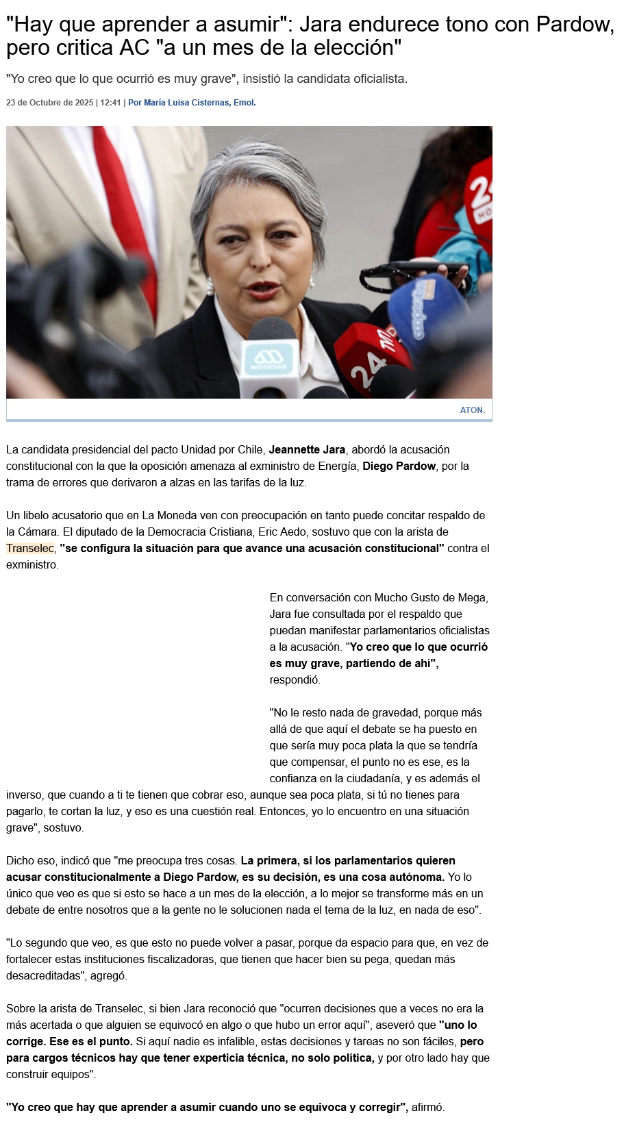 El emplazamiento de Jara por error en cuentas de la luz: “Hay que aprender a asumir cuando uno se equivoca” - (radioagricultura.cl)