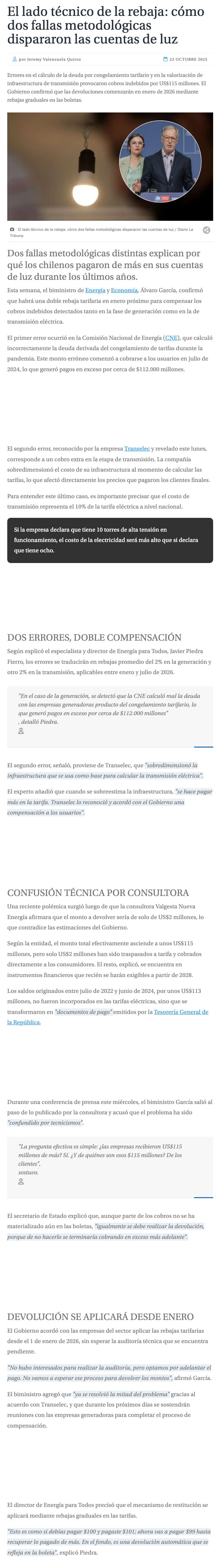 El lado técnico de la rebaja: cómo dos fallas metodológicas dispararon las cuentas de la luz - (La Tribuna)