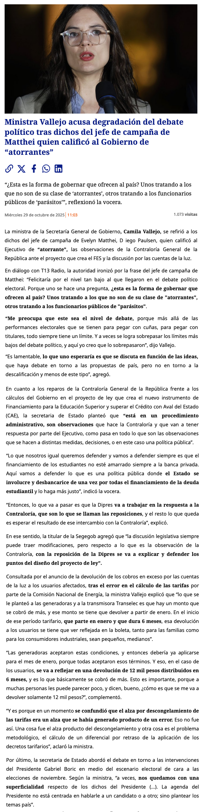 Vallejo y mote de «atorrantes»: «¿Esta es la forma de gobernar que ofrecen al país?» - (estapasando.cl)