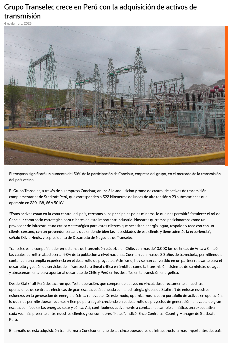 Grupo Transelec crece en Perú con la adquisición de activos de transmisión - (mvcomunicaciones.cl)