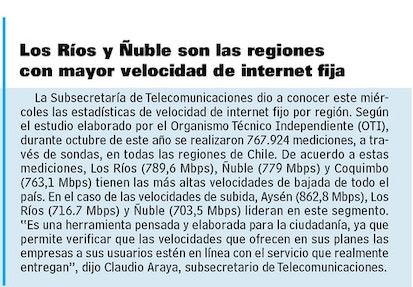 Los Ríos y Ñuble son las regiones con la mayor velocidad de internet fijo - (Pulso)