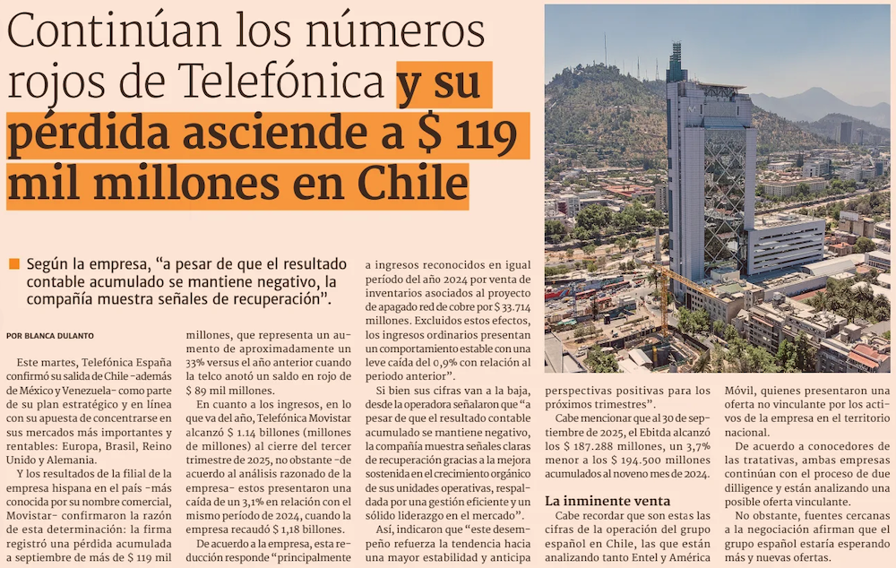 Telefónica amplía sus pérdidas, pero muestra mejoras operacionales - (El Mercurio de Santiago)
