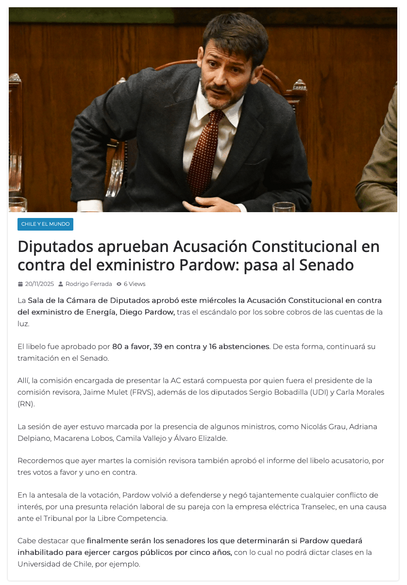 Cámara aprueba Acusación Constitucional en contra de Diego Pardow y su futuro político depende del Senado - (interferencia.cl)