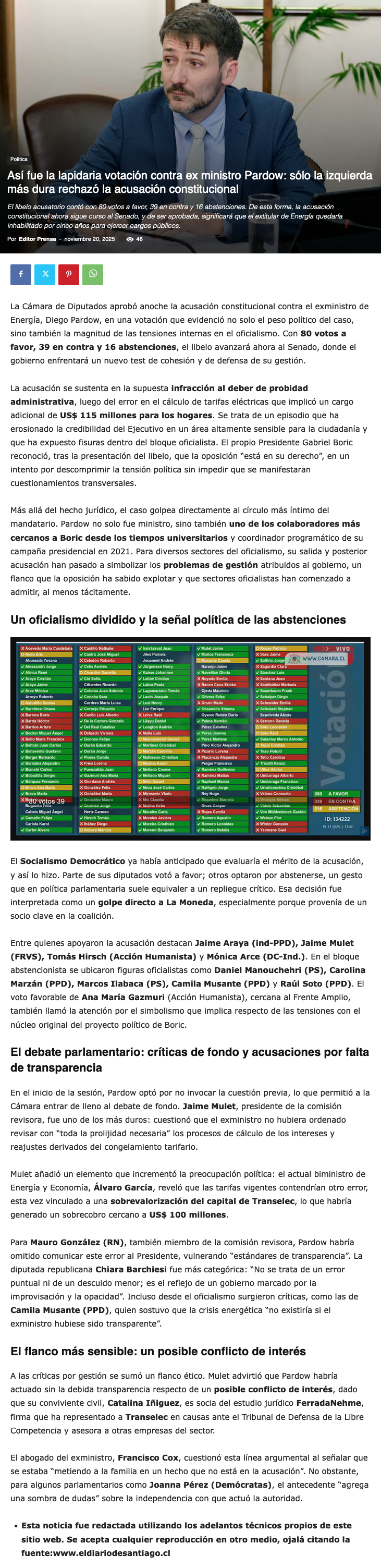 Diputados aprueban Acusación Constitucional en contra del exministro Pardow: pasa al Senado - (chanarcillo.cl)