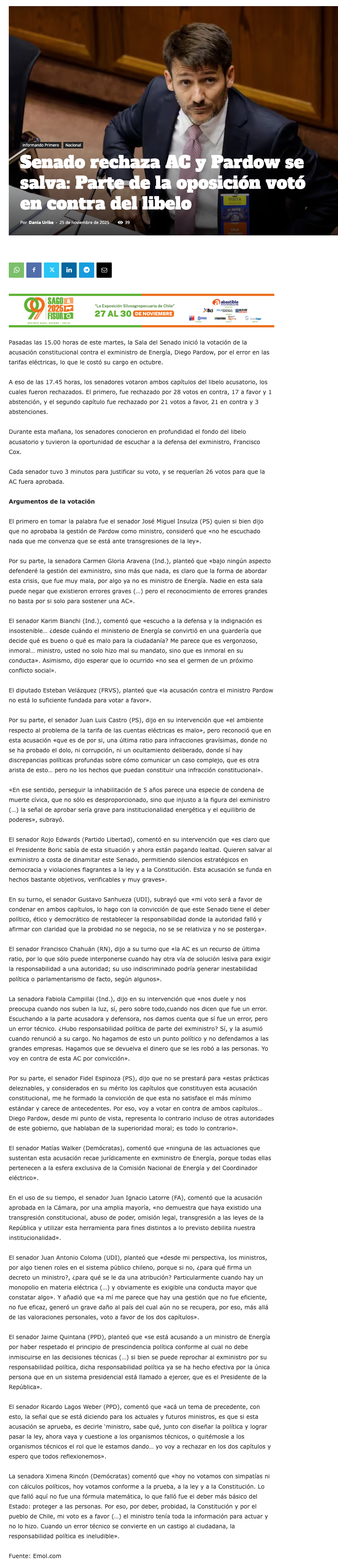 Pardow se salva: Senado rechaza acusación constitucional contra exministro de Energía gracias a desorden de votos de la oposición - (radiolaclave.cl)