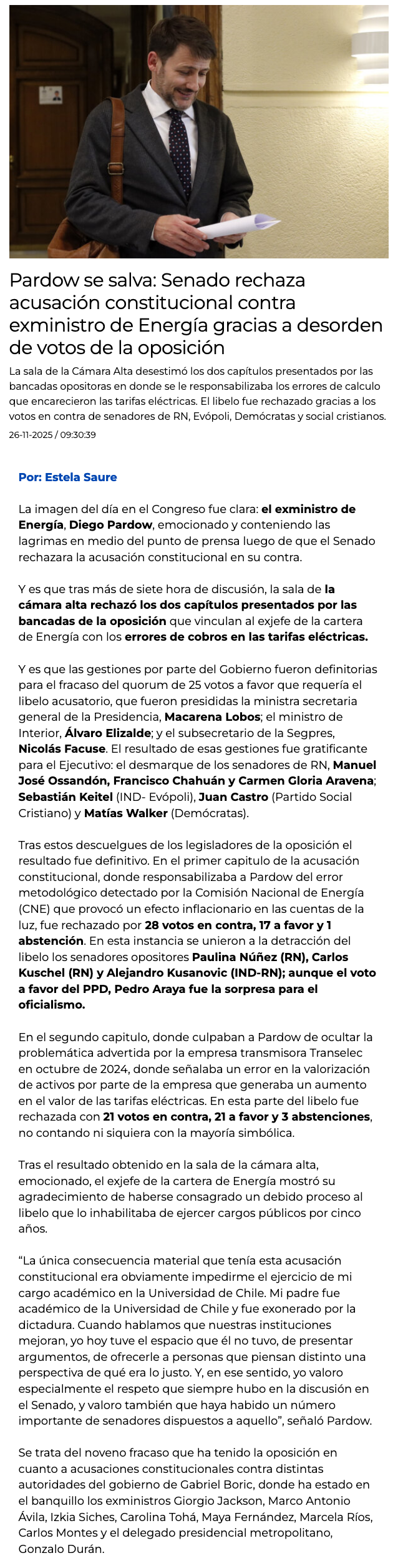 Senado rechaza acusación constitucional contra Diego Pardow y cierra un capítulo marcado por errores técnicos y debate político - (elclarin.cl)