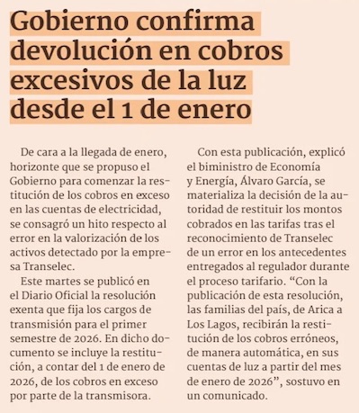 Gobierno anuncia devolución automática en cuentas de luz por cobros en exceso de Transelec - (electromineria.cl)