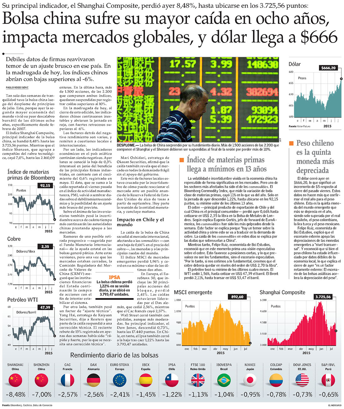 Bolsa de Shanghái sufre su mayor desplome desde 2007 y gobierno afirma que mantendrá intervención - (Diario Financiero)