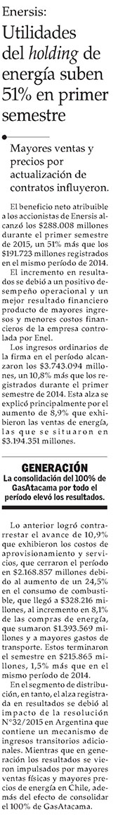 Utilidades de Enersis subieron 51% - (Estrategia)