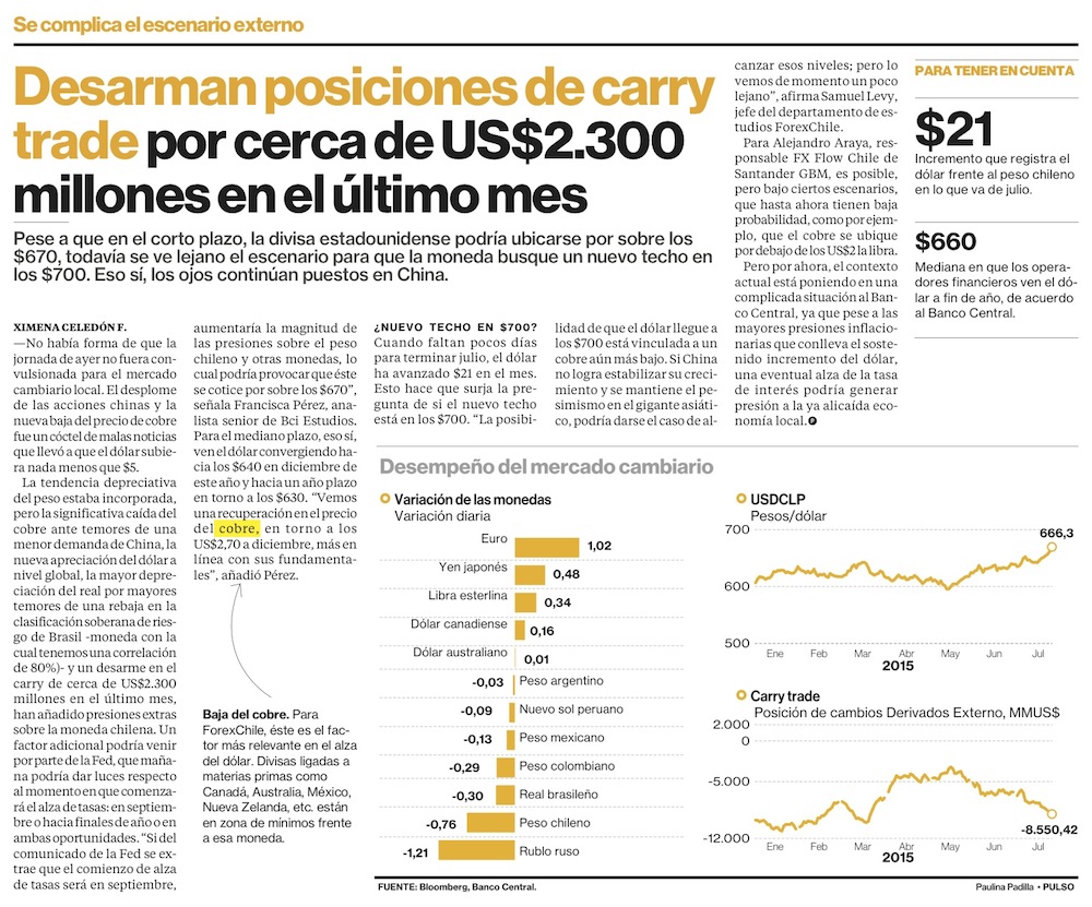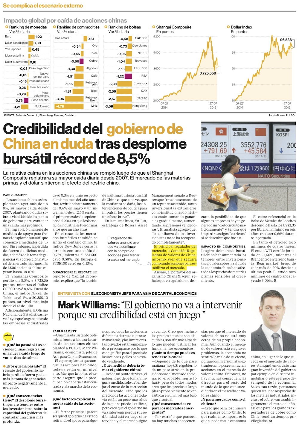 Bolsa china sufre su mayor caída en ocho años, impacta mercados globales, y dólar llega a $666 - (El Mercurio de Santiago)