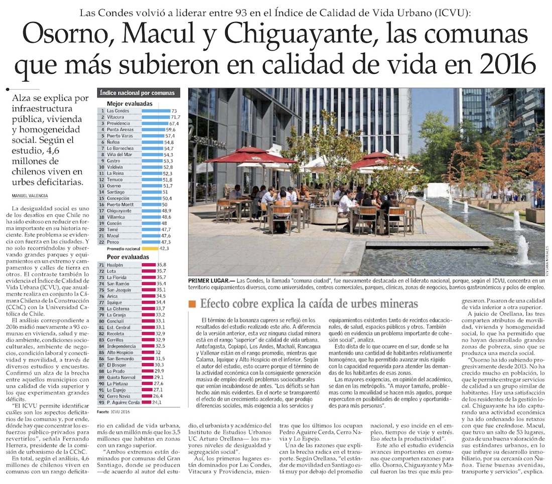 Osorno, Macul y Chiguayante, las comunas que más subieron en calidad de vida en 2016